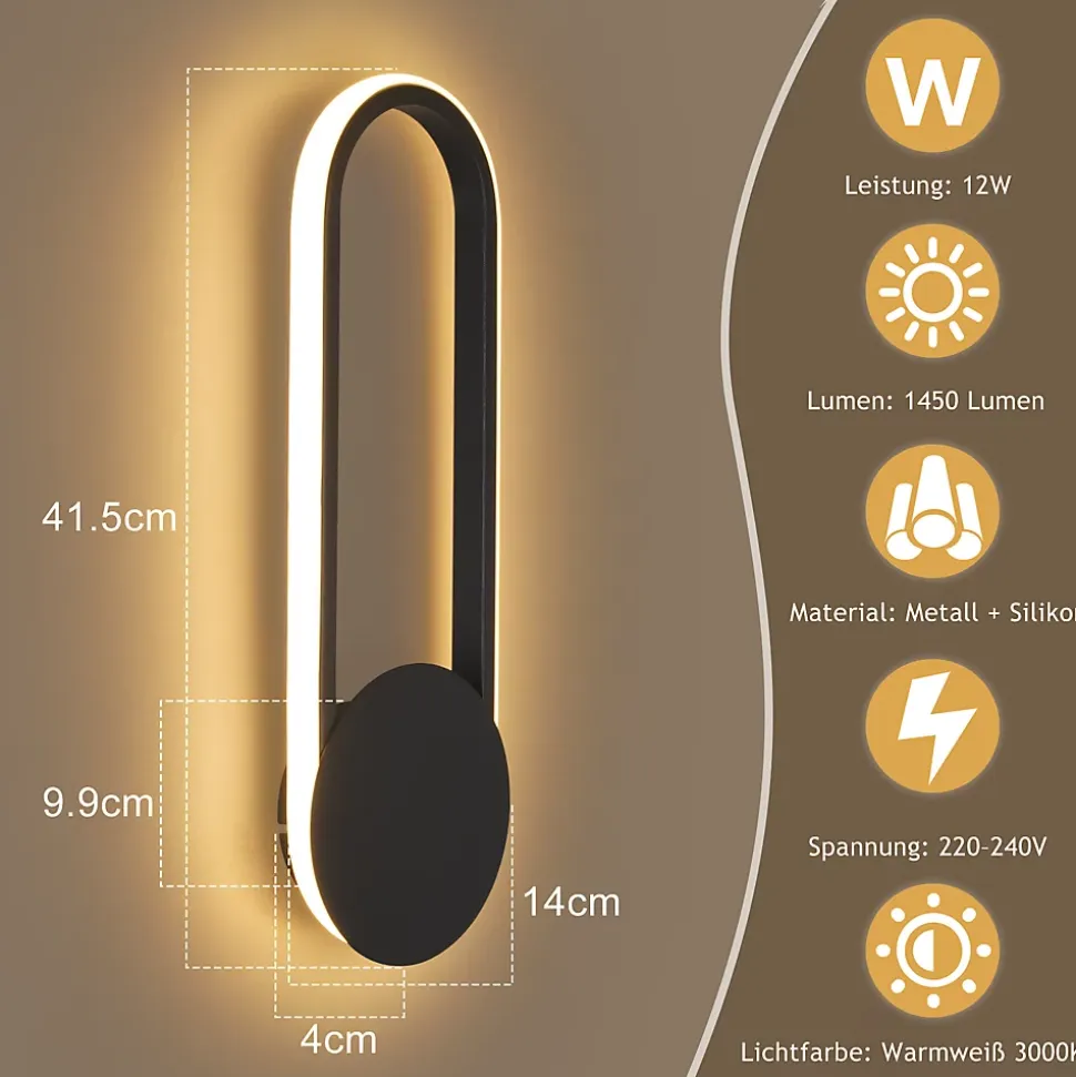 Esthétique moderne : cette applique murale d’intérieur, avec son motif ondulé unique, impressionne par ses lignes épurées et son élégance simple, reflétant l’approche stylistique du designer. Elle est la pièce maîtresse de tout salon. Son noir sobre et son allure décontractée s’intègrent parfaitement aux intérieurs modernes.applique murale blanc chaud : cette applique murale moderne est équipée de puces led de haute qualité délivrant un flux lumineux de 1 800 lm. Elle produit ainsi une lumière plus uniforme et durable, avec un éclairage plus intense. Avec un indice de rendu des couleurs (ra) supérieur à 80, elle reproduit fidèlement les couleurs d’origine des objets. Économe en énergie, elle offre une lumière vive et agréable, sans éblouissement, et est agréable pour les yeux.matériau de haute qualité : cette applique murale d’intérieur dorée est fabriquée en aluminium de haute qualité, avec une surface traitée par pulvérisation et polissage à haute température. Elle est ainsi résistante à la rouille, durable et facile à nettoyer. l’abat-jour en silicone de haute qualité offre une transmission lumineuse douce et agréable et est également incassable.détails techniques : dimensions de la lampe : 41,5 x 14 x 4 cm ; consommation : 12 w ; température de couleur : 3000 k blanc chaud ; tension : 230 v ; type de source lumineuse : led ; intensité variable : non ; portée d’éclairage : 8-12 m2. Câblée et montée en surface pour une installation facile.utilisations polyvalentes : cette applique murale led peut être montée verticalement ou horizontalement et est idéale pour l’éclairage intérieur. Elle est idéale pour éclairer et décorer des pièces telles que : salon, chambre, couloir, cuisine, cage d’escalier, balcon, chambre d’enfant, bar et hôtel.