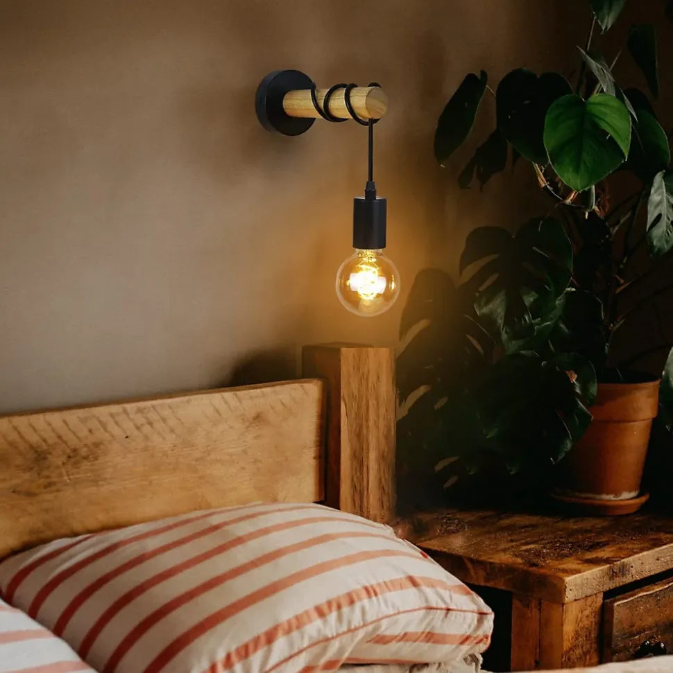 Design rétro-industriel : l’applique murale rétro crée un effet de surprise grâce à son design noir mat. Le naturel et le charme industriel s’unissent dans ce modèle pour créer un accessoire d’intérieur qui promet confort et style. Vous vous sentirez ainsi à l’aise aussi bien dans les pièces modernes que dans les pièces au mobilier plus ancien.détails techniques : dimensions de la lampe : env. 20*10*10cm ; diamètre du pied de lampe : 9.5cm ; douille : e27(max. 40w) ; nombre de flammes : 1 flamme ; tension : 230v ; matériau : métal & bois ; ampoule incluse : non ; avec fiche : non ; autres : ampoule interchangeable ampoule e27 interchangeable : la lampe murale en métal noir sans ampoule répond parfaitement à vos besoins de bricolage. Vous pouvez changer vos ampoules e27 en fonction de votre style actuel, par exemple rétro, moderne, dimmable, smart et rgb. Mais attention à la puissance de 1 ampoule max≤40w.facile à installer et à utiliser : les ampoules se vissent facilement dans la douille pour une installation et une utilisation aisées.