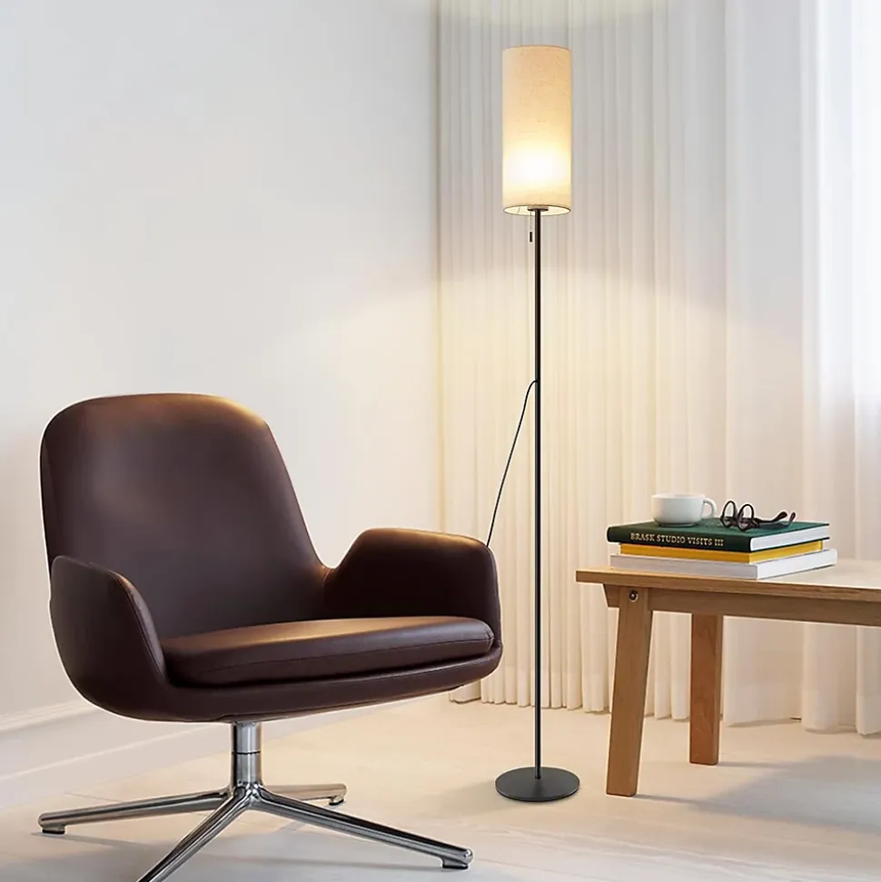 - Design élégant avec cadre métallique noir et abat-jour cylindrique en tissu beige.