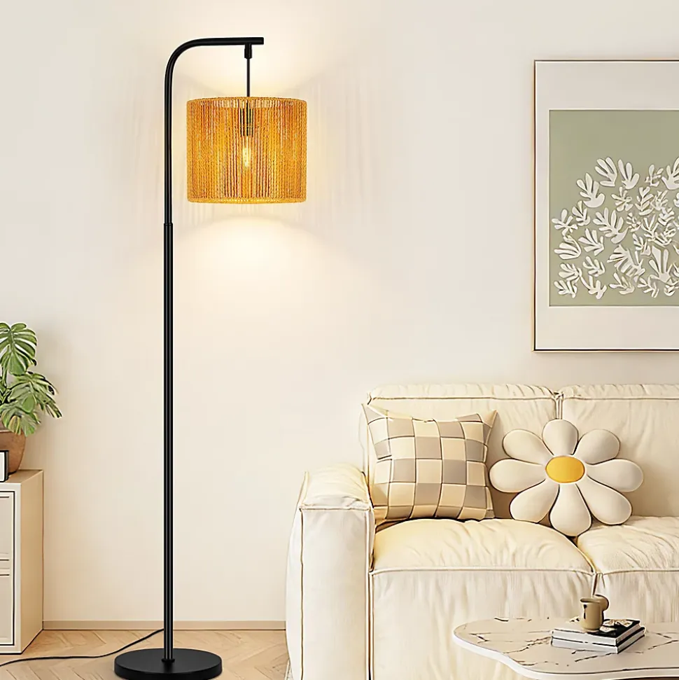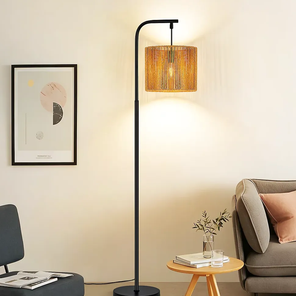 ambiance naturelle : l’abat-jour en corde de papier de ce lampadaire led à une ampoule diffuse une lumière douce, créant l’atmosphère chaleureuse et intime si caractéristique des intérieurs allemands. Idéal pour les salons, les séjours et autres espaces de détente, ce lampadaire noir offre une ambiance apaisante après une longue journée et s’intègre harmonieusement à votre quotidien.parfait pour un style nordique : avec son design épuré, ce lampadaire scandinave s’intègre parfaitement aux intérieurs de style nordique, minimaliste, bohème ou japandi. Plus qu’une simple source de lumière, c’est un véritable élément décoratif qui sublime votre espace et complète votre décoration. Il allie également le charme d’un lampadaire vintage pour créer une ambiance unique.douille e27 flexible : la douille e27 standardisée de ce lampadaire d’intérieur, avec son abat-jour en corde, est compatible avec les ampoules blanc chaud ou blanc froid (40 w max.) et vous permet d’ajuster la lumière selon vos besoins, d’une douce lumière de lecture à un éclairage fonctionnel et puissant. Il répond parfaitement à tous vos besoins d’éclairage.matériaux robustes : ce lampadaire noir est fabriqué en fer de haute qualité (pour le pied stable) et en corde de papier résistante (pour l’abat-jour), garantissant stabilité et longévité. Son bras incurvé et son design en forme de lanterne lui confèrent une allure élégante et une ambiance aérée et agréable.utilisation polyvalente : fonctionnant sur une tension de 220-240 v ca, ce lampadaire en corde de papier est parfaitement adapté à une utilisation en intérieur. Ce lampadaire à une ampoule est idéal pour les tables de chevet, les coins lecture, les bureaux, les terrasses couvertes et les chambres d’enfants – un accessoire pratique et élégant pour votre maison.