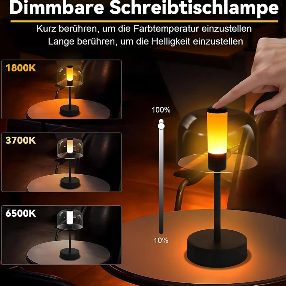 Design épuré : cette lampe de chevet sans fil séduit par son élégant abat-jour rond et fermé, d’une élégance intemporelle. L’association de matériaux de haute qualité, métal et acrylique, garantit une durabilité optimale. Son pied antidérapant intégré empêche efficacement tout basculement ou glissement.Lampe de chevet à intensité variable : cette lampe de chevet à piles offre 3 températures de couleur et une fonction de gradation continue pour s’adapter à toutes les ambiances et tous les besoins d’éclairage. Une pression brève sur l’interrupteur tactile permet d’allumer/éteindre et de modifier la température de couleur (1800 k, 3700 k, 6500 k). Une pression prolongée permet de régler la luminosité de chaque température de couleur de 10 % à 100 %.Protection des yeux : cette lampe de chevet led révolutionne le concept d’éclairage grâce à une répartition lumineuse innovante à 360 °. L’éclairage homogène et périphérique crée une lumière douce et non éblouissante, idéale pour l’éclairage nocturne.Fonction mémoire : cette lampe de table sans fil dispose également d’une fonction mémoire. Lors de la remise sous tension, le dernier mode d’éclairage est conservé. Créez différentes ambiances lumineuses selon votre humeur.Batterie puissante : lampe de table avec batterie intégrée de 2000 mah, rechargeable via n’importe quel port usb-c. Recharge complète en 3 heures et autonomie de 6 à 15 heures.