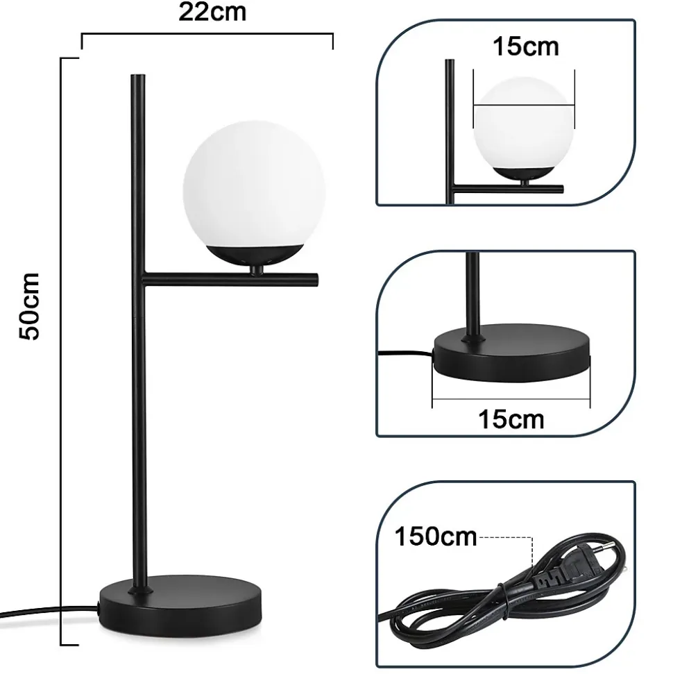 Matériaux de haute qualité:notre lampe de table est fabriquée en métal de haute qualité, la tige métallique dorée et l’abat-jour en verre opale sont parfaitement combinés et confèrent à votre intérieur un sens du style et de la modernité. Avec une base noire antidérapante et une commande pratique par bouton, elle est facile à utiliser. Elle convient aux tables de chevet, aux bureaux, aux chambres, aux salons, aux chambres d’enfants et aux bureaux et vous offre une expérience d’éclairage de qualité. design de l’abat-jour en verre:l’abat-jour en verre blanc laiteux assure une diffusion douce et uniforme de la lumière avec une grande translucidité, créant ainsi une atmosphère lumineuse chaleureuse et confortable. Le design unique de l’abat-jour ajoute une touche d’élégance et de confort à votre pièce. L’abat-jour en verre est facile à nettoyer et dispose d’un design amovible pour un remplacement aisé. douille de lampe e27 standard:notre lampe de chevet utilise une douille filetée e27 standard, qui offre une grande compatibilité. Vous pouvez choisir librement différents types d’ampoules pour répondre à vos besoins d’éclairage individuels et créer une atmosphère différente (puissance maximale 40w). Lumière vive ou éclairage d’ambiance doux, cette lampe de table vous permet de l’adapter librement afin d’obtenir l’effet souhaité.