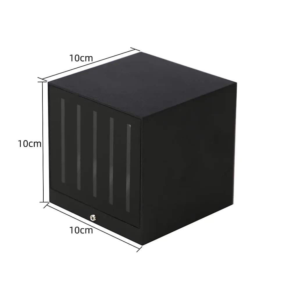 Applique murale led carrée l’applique murale extérieure led a un design simple. Le boîtier est en aluminium moulé sous pression, mais a une forme cubique qui crée une impression harmonieuse. 5 rayons de lumière s’échappant de haut en bas, fière allure sur le mur du fond lumière blanche froide 6000k la couleur de la lumière est un blanc froid agréable avec une température de couleur de 6000 kelvin. Les modules led installés en permanence émettent une lumière blanche froide qui monte et descend sans éblouir. En raison de son aspect discret, il convient à de nombreux environnements ip65 :grâce à son indice de protection ip65, cette source lumineuse spéciale est particulièrement résistante aux intempéries. Qu’il pleuve ou qu’il fasse beau, l’applique murale d’extérieur à led peut gérer toutes les situations. Mais son aspect compact et sobre permet également une fixation facile sur les façades sans éclipser les autres styles architecturaux spécification taille : 10*10*10 cm ; puissance : 10 w ; lumen : 800 lm ; matériau : aluminium et verre ; température de couleur : 6 000 k ; source de lumière led : installation permanente led ; ; tension : 230 v champ d’application cette applique murale en 2 est très facile à installer et à utiliser. Avec son design cubique et simple, l’applique murale noire peut être intégrée optiquement dans n’importe quel espace extérieur. Convient aux scènes d’intérieur et d’extérieur, telles que les balcons, les couloirs, les jardins, les portes d’entrée, les patios, les garages, etc. Période de garantie : 2 ans