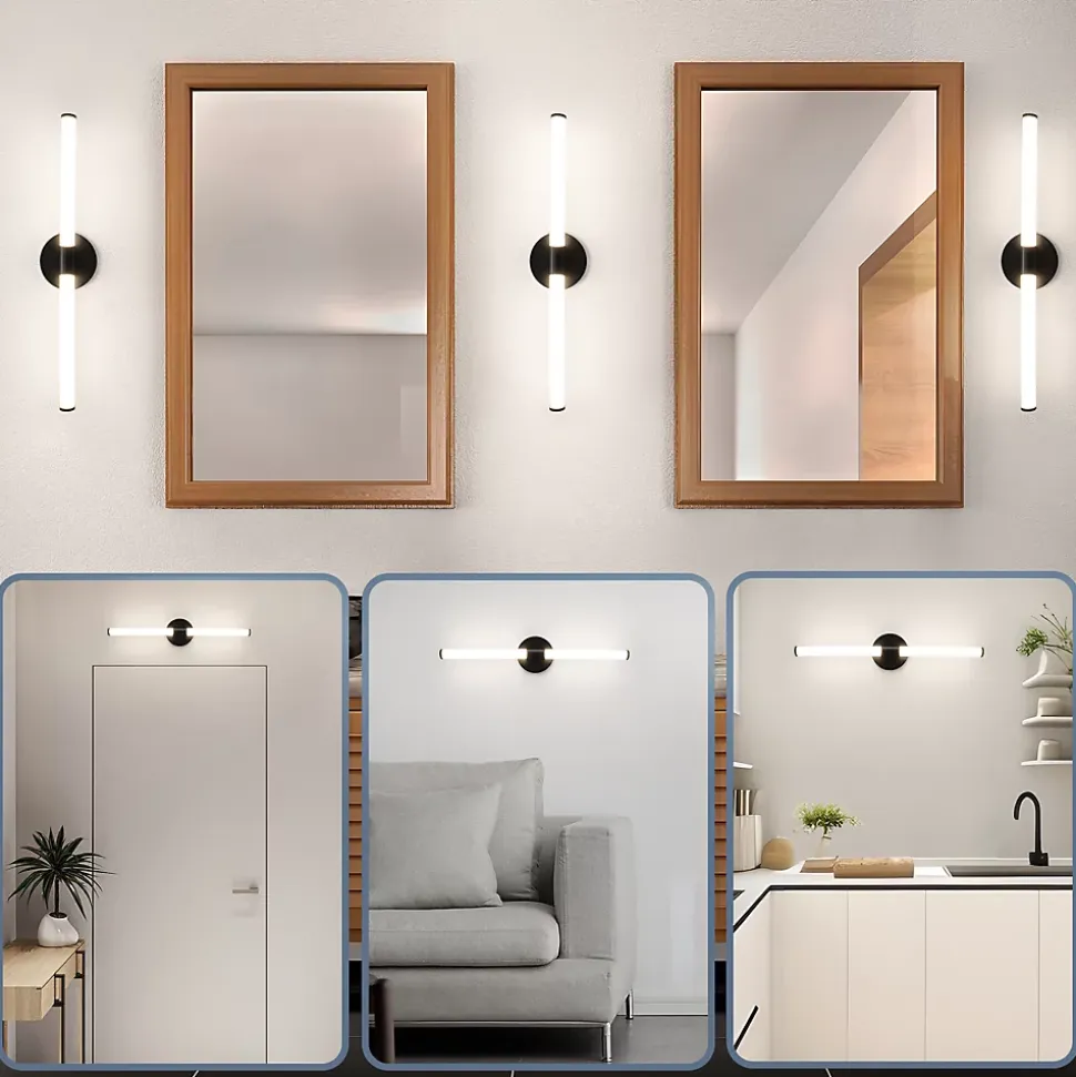 Étanche ip44. Ce luminaire pour miroir de salle de bain est fabriqué en pc et ses bornes de connexion sont équipées de couvercles d’étanchéité pour garantir la sécurité du circuit et empêcher la pénétration de corps étrangers. Cela permet d’éviter les dommages causés par les éclaboussures d’eau, vous permettant ainsi d’utiliser le luminaire en toute sécurité. Par conséquent, les luminaires led pour salle de bain sont particulièrement adaptés à l’éclairage des couloirs, des salons et des salles de bain. Installation facile. Ce luminaire de salle de bain est très pratique. Livré avec deux supports pré-percés et amovibles et tout le matériel de montage nécessaire pour l’utiliser avec différentes lampes de votre maison. Que vous installiez ce luminaire pour miroir comme lampe fixe sur une armoire, un mur ou un miroir (épaisseur ≤ 7 mm), il remplira votre maison de lumière. Luminaire led pour salle de bain avec une lumière agréable : le luminaire pour salle de bain avec éclairage émet une lumière blanche neutre de 4 000 k, sans teinte jaune ni bleue. Les lumières douces et lumineuses diffusent une belle lueur. Idéal pour être placé au-dessus d’un miroir. La couleur blanche neutre de la lumière garantit un éclairage optimal et une protection des yeux pour un confort optimal lors du maquillage, du rasage et des soins corporels quotidiens. Sûr et fiable : l’applique murale de salle de bain 8 w protège la led grâce à un abat-jour en polycarbonate. Robuste et résistante, elle ne rouille pas facilement. L’applique pour miroir se branche directement sur le cordon d’alimentation et fonctionne avec un interrupteur classique, très pratique et sûr. Cette applique murale led a une durée de vie de 20 000 heures. Elle est idéale pour éclairer un miroir à la maison, à l’hôtel, au bureau ou dans un espace de travail. Nombreuses applications : son design épuré et sa finition chromée miroir confèrent à cette applique led à économie d’énergie un aspect moderne et de haute qualité.
