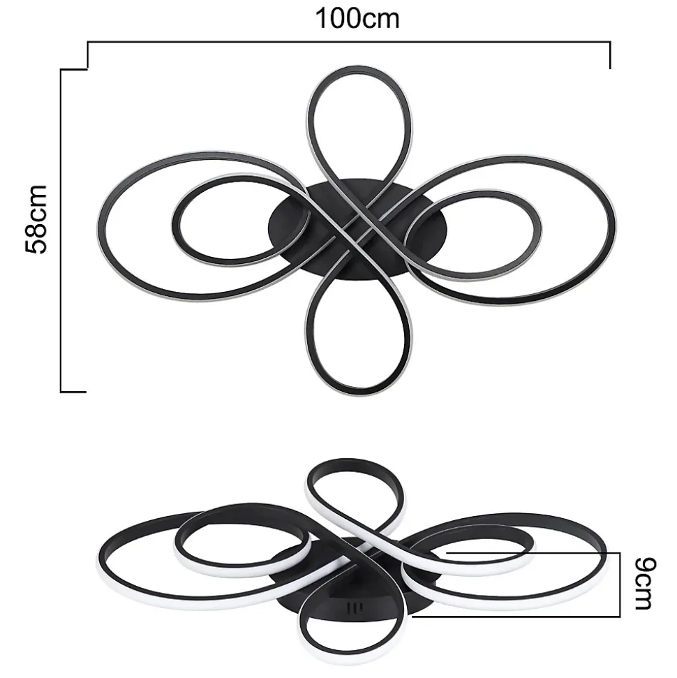 Design papillon unique : ce plafonnier led présente un design papillon exquis, ajoutant une touche romantique et élégante à votre pièce. Il sert non seulement d’éclairage, mais aussi d’élément décoratif saisissant qui donne à votre maison un style unique. Que ce soit de jour ou de nuit, ce plafonnier attirera tous les regards dans votre pièce et créera une atmosphère de vie chaleureuse, confortable et en même temps unique.Technologie à intensité variable en continu : ce plafonnier dispose d’une technologie avancée à intensité variable en continu. Vous pouvez librement régler la température de couleur de la lumière en fonction de vos besoins, répondant ainsi aux besoins d’éclairage de différentes scènes. Choisissez parmi une large gamme de températures de couleur (par exemple de 3 000 k chaud à 6 500 k froid) pour obtenir le bon effet d’éclairage en fonction de l’environnement et des besoins.Informations sur le produit : dimensions : 100*58*9 cm ; puissance : 90w. Matériaux : aluminium et silicone. Ce plafonnier offre une luminosité élevée et laisse toute la pièce briller d’une lumière vive. Malgré un éclairage puissant, ce plafonnier est spécialement conçu pour rendre la lumière douce et uniforme afin d’éviter l’éblouissement et la fatigue visuelle.Service client : tout problème, suggestion, question ou préoccupation. Veuillez nous contacter d’abord, nous vous répondrons dans les 24 heures et résoudrons le problème dans les plus brefs délais