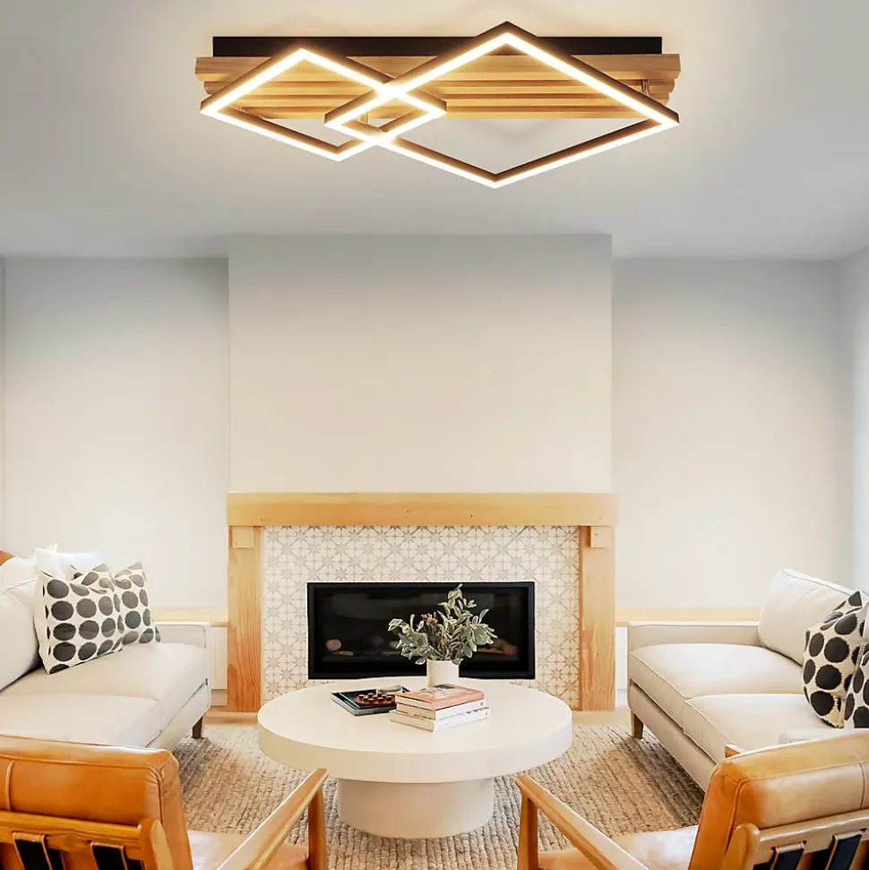 Design géométrique simple : ce luminaire de salon led moderne est composé d’une base en bois et d’une base en fer noir. Des matériaux de haute qualité et durables garantissent longévité et durabilité.Plafonnier basse consommation : le plafonnier en bois gbly a une puissance de 36 w et un diamètre de lampe de 55 cm. Il diffuse une lumière ultra-lumineuse et couvre une surface de 15 à 30 m2. Comparé aux lampes classiques, il vous permet d’économiser plus de 90 % sur vos factures d’énergie.Variation d’intensité : le plafonnier de chambre gbly est télécommandé. La température de couleur est réglable entre 3 000 k et 6 500 k. La luminosité est réglable entre 10 % et 100 %, vous permettant d’ajuster la lumière selon vos besoins. La fonction mémoire enregistre les réglages effectués depuis la dernière extinction.Agréable pour les yeux, sans scintillement : ce plafonnier led moderne en bois est résistant aux interférences haute fréquence. Grâce à l’abat-jour en matériau de haute qualité, la lumière est vive et uniforme, sans scintillement ni éblouissement. L’indice de rendu des couleurs du plafonnier led est supérieur à 80, offrant une reproduction claire et éclatante des couleurs.