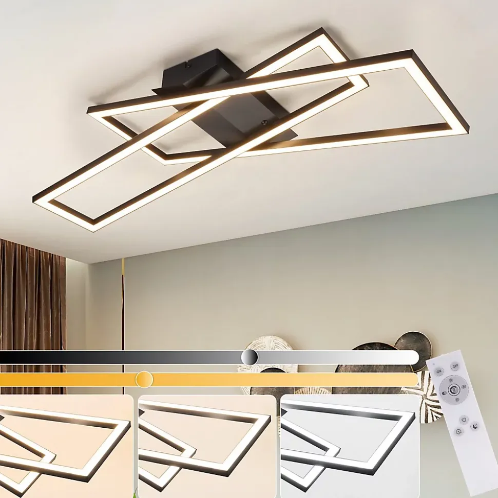 design moderne : le plafonnier led présente un design géométrique composé d’éléments lumineux rectangulaires entrecroisés dans une forme épurée et minimaliste. Il ne s’agit pas seulement d’un éclairage intérieur décoratif, mais il fournit également un éclairage chaleureux pour votre pièce. fonction de gradation et de minuterie : la luminosité (0 %-100 %) et la température de couleur (3 000 k-6 500 k) du plafonnier led peuvent être réglées via la télécommande incluse. Grâce à la fonction minuterie, les plafonniers s’éteignent automatiquement 60 secondes avant le coucher. Vous pouvez également régler le mode veilleuse (10 % de luminosité) pour vous endormir plus rapidement. Différentes fonctions pour vos différents besoins d’éclairage. efficacité énergétique et protection des yeux : plafonnier moderne carré 36 w/45 w, 4 500/5 500 lm, plus économe en énergie que les ampoules classiques, avec une longue durée de vie de plus de 20 000 heures. Son rendu des couleurs élevé (irc > 80) offre un meilleur effet visuel. Ce plafonnier utilise une source lumineuse led stable, sans éblouissement ni scintillement, pour une meilleure protection des yeux. Large gamme d’applications : ce plafonnier led moderne et élégant est idéal pour une chambre, un salon ou une cuisine. Il convient aux espaces de 5 à 20 m2 tels que le salon, la chambre, la salle à manger, la cuisine, la chambre d’enfant, le bureau, la chambre d’adolescent, etc. C’est également un cadeau de pendaison de crémaillère idéal pour vos proches ! Installation facile : sa conception ergonomique, son intensité variable et l’utilisation de la télécommande sont décrites dans le manuel d’instructions fourni. En cas de problème lors de l’installation ou de l’utilisation, n’hésitez pas à nous contacter ; nous le résoudrons dans les plus brefs délais.