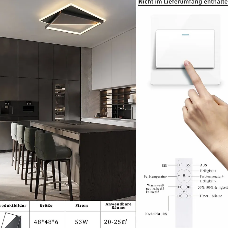 Découvrez notre plafonnier LED design moderne avec motifs carrés, idéal pour apporter une touche contemporaine à votre intérieur. Ce luminaire polyvalent de la marque ZMH mesure 480mm x 480mm x 55mm et s’adapte parfaitement à divers espaces, que ce soit dans votre salon, chambre ou bureau. Avec une température de couleur réglable entre 3000 et 6000 kelvins, vous pouvez créer l’ambiance parfaite grâce à son éclairage indirect au plafond. De plus, ce plafonnier est dimmable et livré avec une télécommande pour un confort d’utilisation optimal. Fabriqué en fer et acrylique, il allie élégance et durabilité. Profitez d’une garantie de 2 ans pour une tranquillité d’esprit. Transformez votre décoration avec ce plafonnier moderne et fonctionnel.