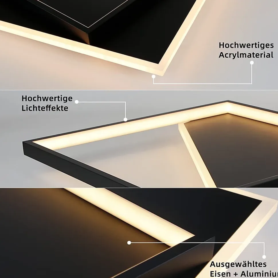 Design moderne avec motifs carrés, dimmable avec télécommande, corps en fer et acrylique, polyvalent pour divers espaces.