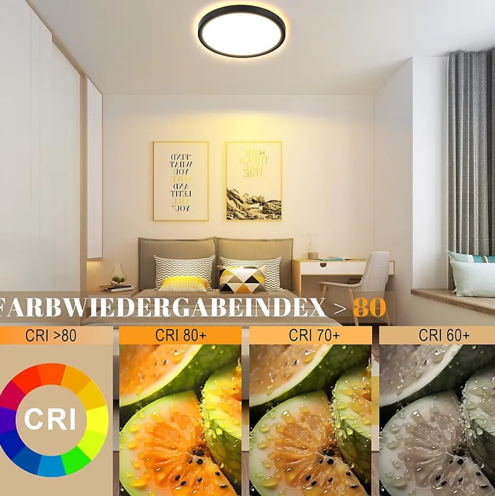 Découvrez notre plafonnier LED design noir de 22 cm et 18W, idéal pour illuminer votre salon, cuisine ou couloir. Grâce à son éclairage à intensité variable et son rétroéclairage nocturne, personnalisez l’ambiance de votre espace selon vos envies. Ce luminaire, signé ZMH, allie esthétique avec ses lignes minimalistes et fonctionnalité, offrant une protection des yeux grâce à son abat-jour semi-transparent. Avec une garantie de 2 ans, ce plafonnier est parfait pour une utilisation dans divers environnements. Profitez de trois températures de couleur : 3000K, 4000K et 6500K, pour une luminosité adaptée à chaque moment de la journée. Inclus : notice et pièce de montage. Transformez votre intérieur avec ce plafonnier élégant et pratique.
