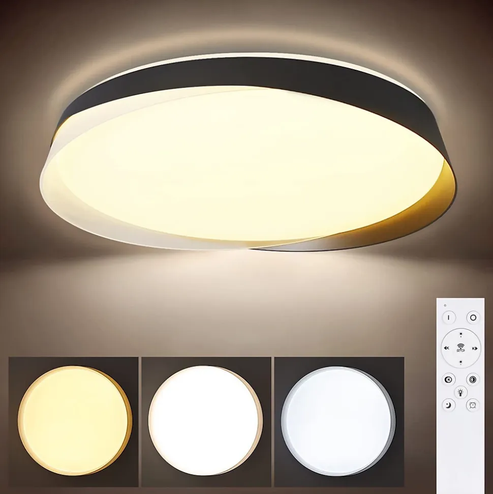✔Intensité lumineuse réglable pour un confort optimal : Grâce à sa télécommande, ce plafonnier à intensité variable permet un réglage continu de la température de couleur, du blanc chaud (3000 K) au blanc froid (6000 K). La luminosité est également réglable de 5 % à 100 %. Un simple clic sur le bouton de variation permet de modifier facilement la température de couleur et la luminosité (10/50/100 %) en trois étapes, pour créer l’ambiance lumineuse idéale.✔Design moderne et élégant : Ce plafonnier séduit par sa forme ronde, qui associe des demi-cercles noirs et blancs. Son style épuré, rehaussé par le contraste du noir et du blanc, apporte une touche de modernité et d’élégance à toute pièce. Ses lignes nettes et son harmonie de couleurs raffinée en font un véritable atout décoratif.✔Fonctionnalités pratiques pour un confort optimal et des économies d’énergie : Ce plafonnier LED propose un mode veille à faible consommation, idéal pour une utilisation nocturne. La minuterie de 60 secondes éteint automatiquement la lumière. La haute transmittance du PVC optimise l’efficacité énergétique et permet de réaliser des économies d’énergie.✔Utilisation polyvalente : Que ce soit dans le salon, la chambre, le couloir, la cage d’escalier, un hôtel ou une entrée, ce plafonnier s’intègre partout et crée une ambiance lumineuse agréable. Mesurant 41,5 x 41,5 cm et offrant une puissance de 36 W (2 880 lumens), il est idéal pour de nombreuses pièces et usages.✔Matériau durable et installation facile : Fabriqué en PVC, ce plafonnier est léger, résistant aux frottements et à la pression, et facile à nettoyer. Son installation est simple et la télécommande incluse facilite grandement le montage.