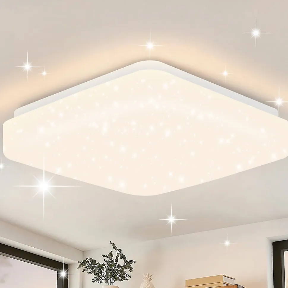 [la surface de l’abat-jour blanc a été spécialement conçue. Lorsque le plafonnier est éclairé, il est très brillant. Les étoiles sur la surface du plafonnier sont simples et surprenantes, soulignant la nature décorative de la lampe de table. d’innombrables petites étoiles dansant au plafond constituent une expérience visuelle merveilleuse. [le plafonnier 3000k émet une lumière blanche chaude, qui réduit les lésions oculaires, protège vos yeux et ne les fatigue pas. Perles led de haute qualité, sans scintillement et anti-lumière bleue. Protégez votre vue. [ facile à installer] le plafonnier est divisé en deux niveaux, l’un supérieur et l’autre inférieur, et le luminaire ne peut être assemblé qu’en tournant deux simples boutons-pression. Il est également très facile d’installer le plafonnier au plafond, vous n’avez même pas besoin d’un électricien. [ détails techniques] taille: 21*21*6cm, voltage : 230v, puissance : 15w, 1200 lumens, lumière led installée de façon permanente.: