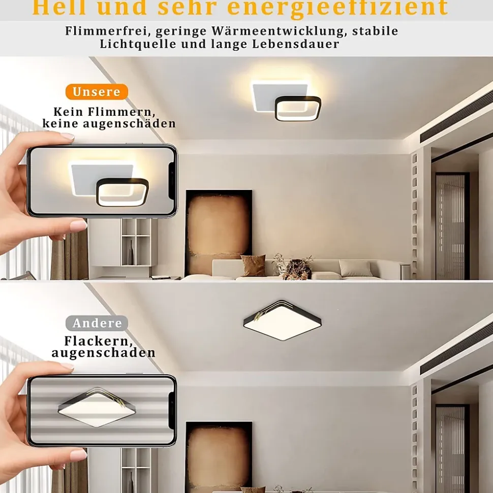 Design minimaliste : le plafonnier led moderne a une forme géométrique, le plafonnier est composé de deux formes de tailles différentes avec un design simple et généreux et un aspect petit et compact. La lumière chaude de 3000k crée une atmosphère minimaliste et confortable.matériaux : le plafonnier est fabriqué en acrylique et en métal de haute qualité, l’abat-jour est en acrylique avec une bonne transmission de la lumière, une lumière douce et chaude, une couleur uniforme et protège les yeux. La surface est peinte, avec une texture délicate et une belle atmosphère.spécification : taille : 24.5x6x24.5cm. Puissance : 15w. Lumens : 1200lm. Température de couleur : 3000k. Gradation : pas de gradation. Plage d’éclairage : 5-10m2. L’utilisation de la technologie led avancée permet d’économiser de l’énergie et constitue un bon choix pour la consommation d’électricité à la maison et au bureau.installation facile : les plafonniers à led n’ont pas besoin d’être montés, le câblage interne du corps lumineux est déjà terminé. Il vous suffit de brancher les fils et de les fixer au plafond. Pour plus d’informations, consultez le guide d’installation.plafonnier polyvalent : les plafonniers à led peuvent être utilisés dans le salon, la chambre à coucher, le couloir, les balcons, la cage d’escalier, le débarras, la cuisine, la chambre d’enfant, etc. Ils peuvent également être utilisés dans les espaces commerciaux et d’exposition tels que les restaurants et les galeries, les salles à manger, les bars et les cafés.