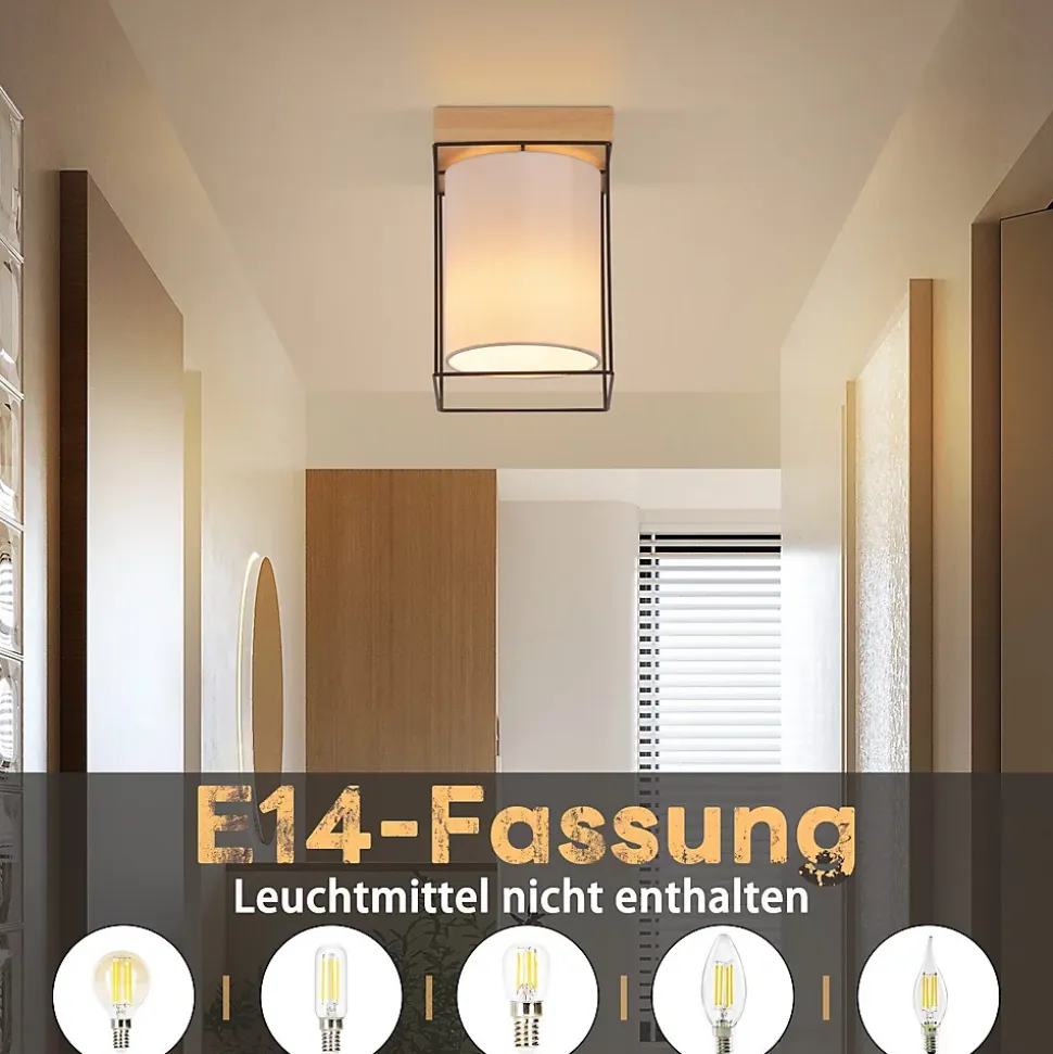 [classique et minimaliste] le plafonnier zmh pour l’entrée combine un abat-jour en tissu avec un baldaquin en bois et un cadre métallique pour créer une atmosphère chaleureuse et confortable dans votre maison. Grâce à son design simple, elle apporte une touche visuelle et s’adapte parfaitement à différents styles d’intérieur.[diffusion douce de la lumière] l’abat-jour du plafonnier, idéal pour la cuisine, est fabriqué en toile de lin résistante et assure un éclairage uniforme sans éblouissement. l’abat-jour dissimule également la source lumineuse et prolonge ainsi la durée de vie des ampoules.[libre choix] le plafonnier pour la chambre à coucher dispose d’une douille d’ampoule e14 à une flamme (max. 40 w), mais l’ampoule n’est pas comprise dans la livraison. Selon vos goûts, vous pouvez utiliser des ampoules led et choisir la température de couleur et l’intensité de la lumière. C’est le choix idéal pour l’éclairage du plafond de votre maison.[taille correcte] la taille de la base en bois du plafonnier pour le couloir est de 13,5 x 13,5 x 2,5 cm. Le cadre métallique mesure 13,5 x 13,5 x 18 cm. L’abat-jour a un diamètre de 12 cm et une hauteur de 15 cm. Cela signifie que cette lampe est particulièrement bien adaptée à une installation dans les couloirs ou les chambres, en particulier dans les petites pièces.[installation facile] la lampe de chambre à coucher est livrée avec des instructions de montage et tout le matériel d’installation nécessaire. Le cadre métallique assure la stabilité, tandis que le design noir mat déploie son charme unique dans chaque pièce – que ce soit le salon, la chambre à coucher, la cuisine, le couloir ou le bureau – et offre une expérience visuelle agréable.: