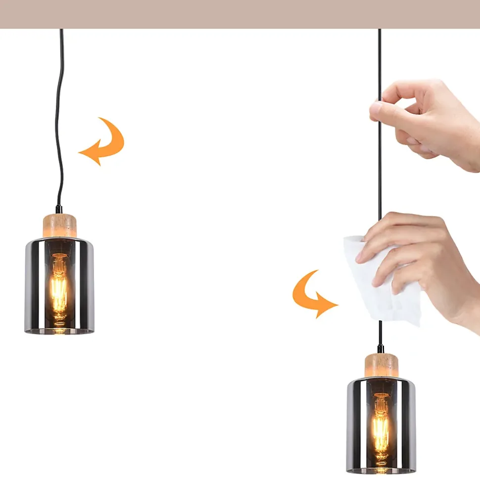 L’élégance naturelle grâce à un mélange de matériaux : la suspension en bois et en verre gris fumé combine deux matériaux de haute qualité pour créer un design naturellement élégant. Les matériaux robustes et la fabrication solide promettent une longue durée de vie. Réglage de la hauteur pour une flexibilité maximale : la lampe est réglable en hauteur jusqu’à 120 cm, ce qui permet une adaptation optimale à différentes hauteurs de pièces et styles d’intérieur. Installation facile et positionnement flexible : la lampe suspendue est facile à assembler et son réglage en hauteur lui permet d’être adaptée individuellement à vos besoins et à la pièce. Charme industriel pour différents environnements : la lampe suspendue, avec son look industriel, convient non seulement aux maisons privées, mais aussi aux cafés, bars et restaurants. Il peut être utilisé de diverses manières, par exemple : au-dessus des tables à manger, dans la cuisine ou dans le couloir.