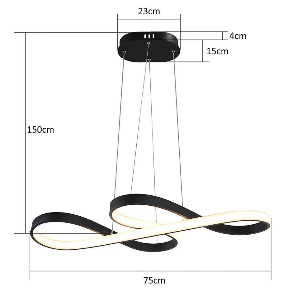 Design la lampe suspendue music symbol est une lampe de designer. Sa forme unique reflète la forte personnalité et la créativité du designer et devient en même temps une décoration artistique de l’espace. Les éléments musicaux du thème sont mis en valeur, ce qui confère à la pièce une atmosphère musicale plus riche. Idéales pour les studios de musique, les studios d’enregistrement, les salles d’événements et autres lieux les lampes suspendues en aluminium ont été soigneusement conçues pour allier esthétique et fonctionnalité afin de prolonger la durée de vie du luminaire. Dimensions : 75 x 35 x 6 cm ; puissance : 47 w ; dimmable : oui ; avec télécommande : oui dimmable : la télécommande pratique permet de régler la température de couleur du blanc froid (6000k) au blanc chaud (3000k) ainsi que la luminosité. Le dernier réglage est mémorisé lorsque vous éteignez l’appareil à l’aide de la télécommande. Chaque interrupteur mural permet d’activer ou de désactiver la température de couleur (blanc chaud/blanc neutre/blanc froid) à chaque fois mode éclairage nocturne : la lampe suspendue peut être utilisée avec une faible consommation d’énergie en appuyant sur le bouton mode éclairage nocturne de la télécommande. Ajoute une touche décorative forte au salon, lui donnant une touche artistique et le rendant plus riche et plus beau.