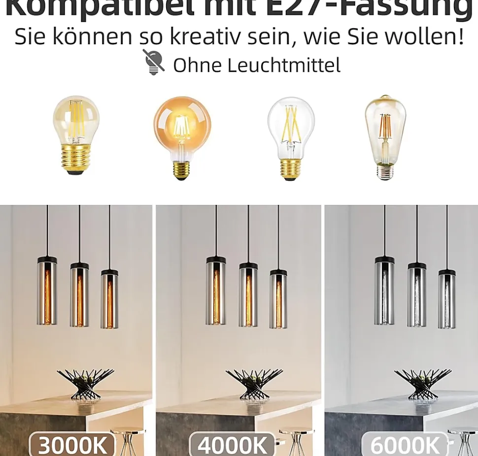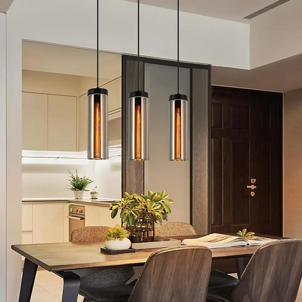 Design features la suspension est conçue avec un verre gris fumé qui donne à la source lumineuse une sensation de présence particulière et peut être combinée avec différents styles de meubles pour compléter harmonieusement l’esthétique de la pièce. En même temps, le verre a une bonne transmission de la lumière, ce qui permet de maximiser la lumière dans la pièce. Taille du produitla partie de l’abat-jour de cette suspension de salle à manger taille : 10 * 10 * 32.5 cm ; câble : 120 cm de long, réglable en hauteur;cadre de plafond droit dimensions : 46*5*2.5cm ; matériel : fer/verre. Source lumineuse interchangeable e27la tête de cette suspension en verre peut être remplacée, peut remplacer de manière flexible la source lumineuse de différentes douilles e27, comme le vintage, le moderne et d’autres styles, satisfaire pleinement vos besoins de bricolage. En outre, le plafonnier à 1 flamme a une puissance maximale de 25w,une tension d’entrée de 230v et une classification ip20. Matériaux de haute qualité & facile à installerla suspension est composée d’un cadre en fer robuste et d’un verre de haute qualité qui ne rouille pas facilement et qui a une grande transmission de lumière, ce qui garantit la durabilité et la sécurité. En outre, la lampe à suspendre est facile à monter avec une gamme complète d’accessoires, pas besoin d’outils compliqués ou de compétences professionnelles, vous pouvez terminer l’installation en quelques minutes. Multiples utilisationscette suspension de salle à manger dispose d’un design simple et généreux avec un aspect cylindrique minimaliste qui convient très bien aux îlots de cuisine, tables de salle à manger, salons, chambres, cuisines, couloirs, vérandas, magasins, hôtels, bars, bureaux et autres salles de réception.