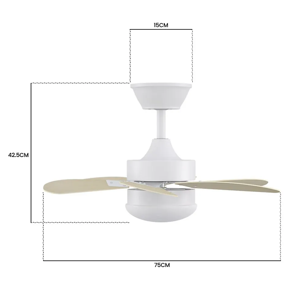 Économie d’énergie : Comparé à l’utilisation séparée d’un ventilateur et d’un plafonnier, ce ventilateur-plafonnier combiné permet d’économiser électricité et énergie en regroupant les deux fonctions dans un seul appareil. Une utilisation réduite de la climatisation contribue également aux économies d’énergie et à un impact moindre.Ce produit ne comprend pas d’ampoule (une ampoule LED doit être utilisée).Minuterie : Grâce à son design innovant, ce ventilateur permet de régler sa durée de fonctionnement via la télécommande. Il dispose d’un timer réglable sur 1H/2H/4H, optimisant ainsi la consommation énergétique.Vitesse du vent + Silencieux : La télécommande permet d’ajuster la vitesse du vent (6 niveaux). Les 6 pales du ventilateur assurent une rotation fluide et réduisent les nuisances sonores. La direction de rotation est réversible, optimisant à la fois la fraîcheur estivale et la circulation d’air en hiver.Dimensions et matériaux : Dimensions 75x75x42,5 cm – Culot E27 – Puissance max. 40W – Surface éclairée 10-15 m². Abat-jour en acrylique + corps en métal + pales en ABS + moteur en cuivre pur garantissent robustesse et durabilité. Lumière douce et anti-éblouissement, avec un fonctionnement très silencieux. Durée de vie jusqu’à 30 000 heures.Applications : Design élégant et épuré, adapté au salon, chambre, chambre d’enfant, bureau, couloir et autres espaces. Installation facile et entretien simplifié. En cas d’abat-jour défectueux, contactez le service client pour obtenir des pièces de rechange.Installation facile : Le produit est livré avec un manuel d’installation pour un montage rapide et sans difficulté. Remarque : La pièce métallique sur les pales doit être orientée vers le haut lors de l’installation. Les pales peuvent être montées en sens horaire ou anti-horaire, mais le fonctionnement sera plus silencieux en rotation horaire.